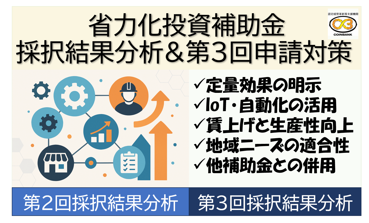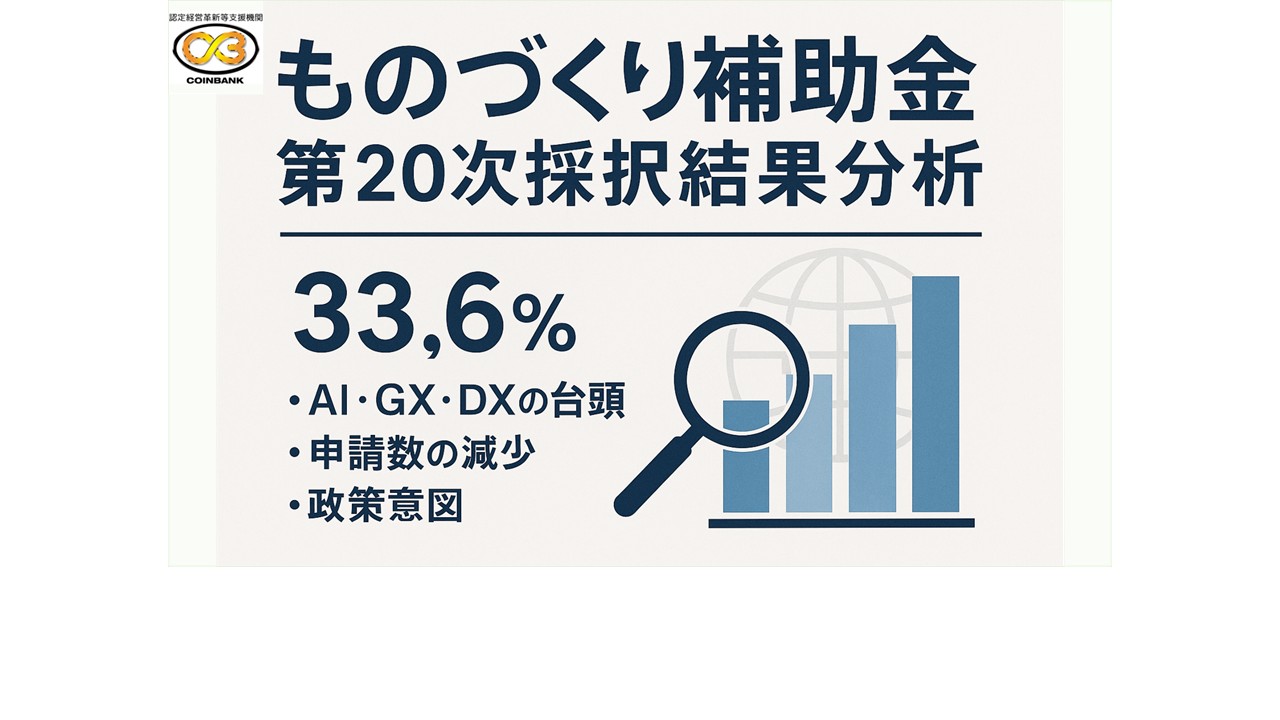 Coinbank株式会社では、中小製造業や地銀・信金・経営支援機関の皆様向けに、2025年度「第20次ものづくり補助金」の採択傾向と攻略ポイントをわかりやすく整理しました。補助金を“勝ち取る”ためには、制度変更への正確な […]