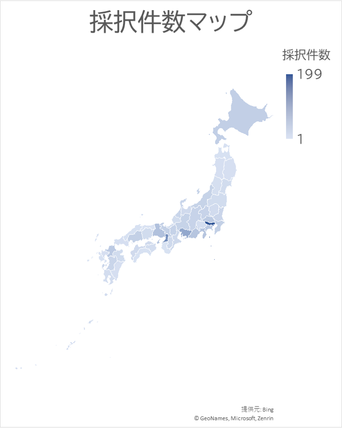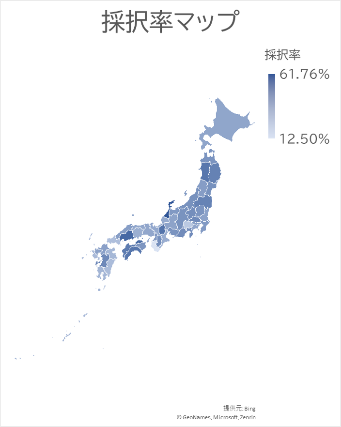 青森・秋田・山形などは採択率も応募率も低め。産業構造や人口規模の制約が影響している可能性があります。