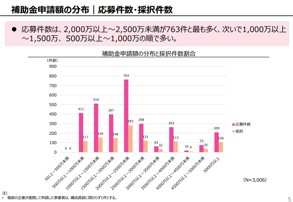 •  申請金額の傾向:2,000万~2,500万円の応募が最多(763件)