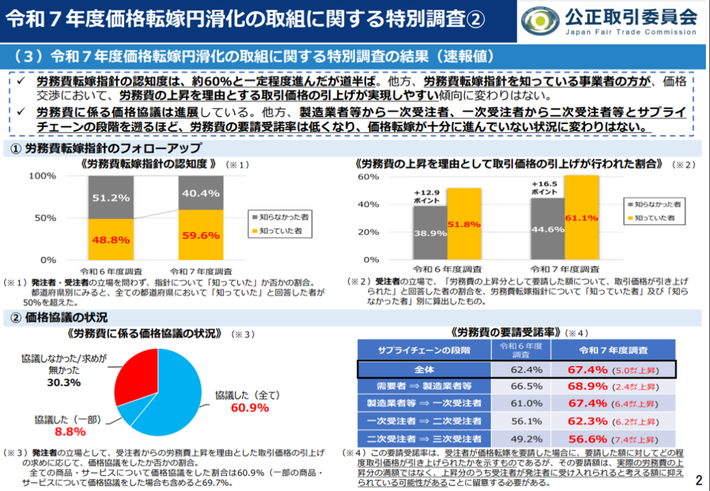 さらに、2026年1月施行予定の「受託取引適正化法」に向けて、 全国での説明会や周知動画の公開を進めており、価格転嫁を法令面から後押しする体制を整えています。