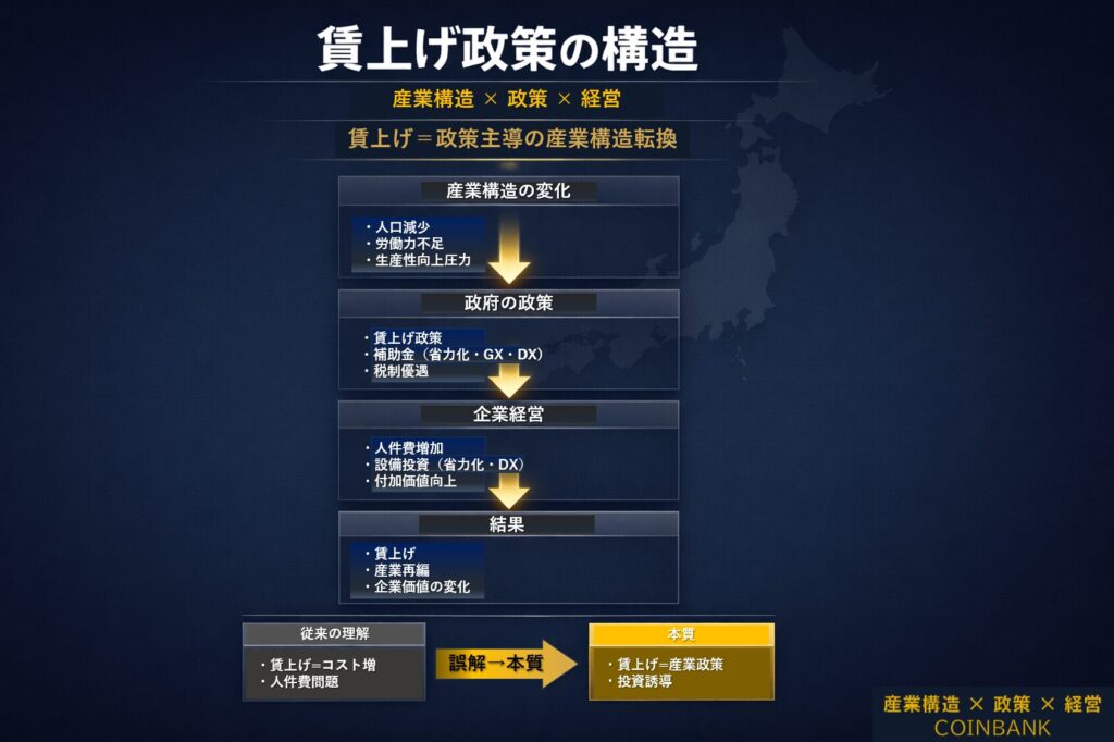 賃上げ政策は、GX・DX・設備投資政策と連動した産業再編戦略である。